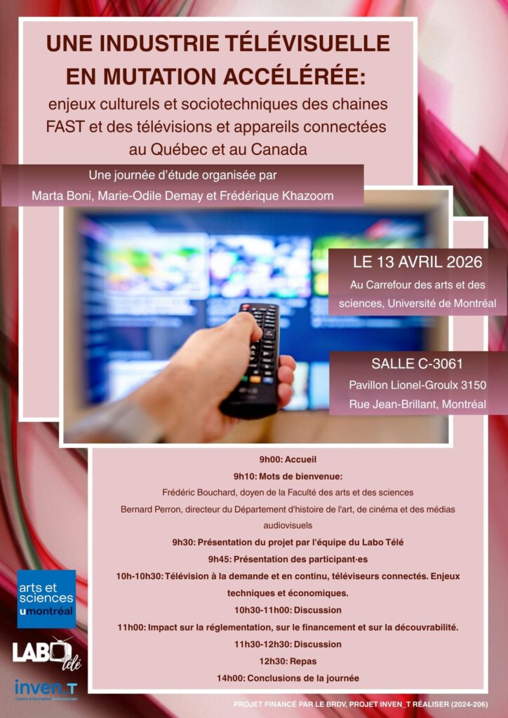 Journée d’étude « Une industrie télévisuelle en mutation accélérée: enjeux culturels et sociotechniques des chaines FAST et des télévisions et appareils connectées au Québec et au Canada »