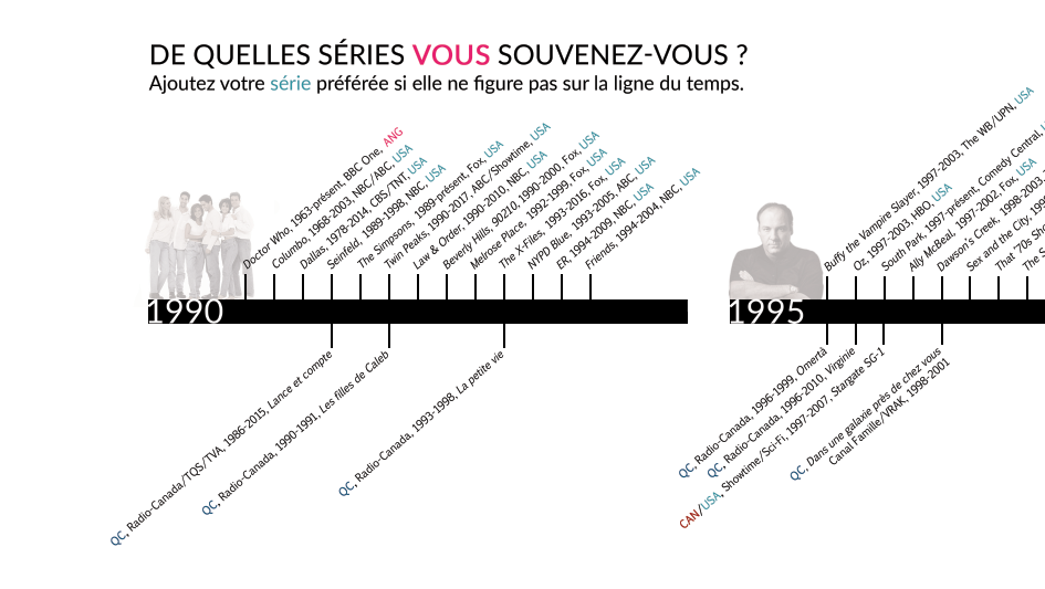 Direction du projet Télé en séries et supervision de l’exposition : Jérôme-Olivier Allard, Elaine Després, Simon Harel et Marie-Christine Lambert-Perreault