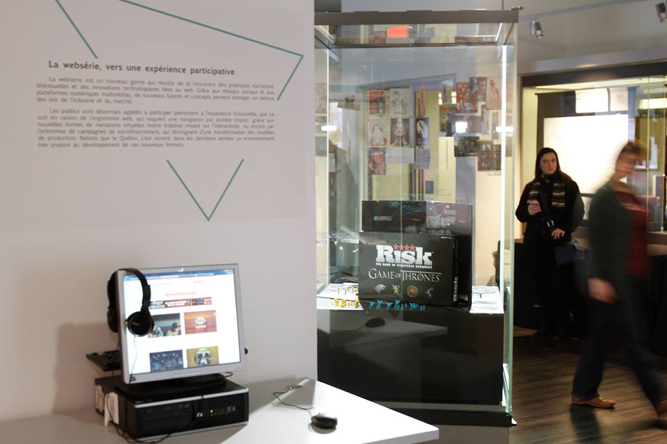 L’exposition (Université de Montréal, novembre 2015-février 2016), commissariée par Marta Boni, a été réalisée dans le cadre du projet Télé en séries, dirigé par Jérôme-Olivier Allard (UdeM), Elaine Després(chercheuse indépendante), Simon Harel (UdeM) et Marie-Christine Lambert-Perreault (UQAM) avec le soutien du Carrefour des arts et des sciences de l’Université de Montréal (Pauline Pourailly).